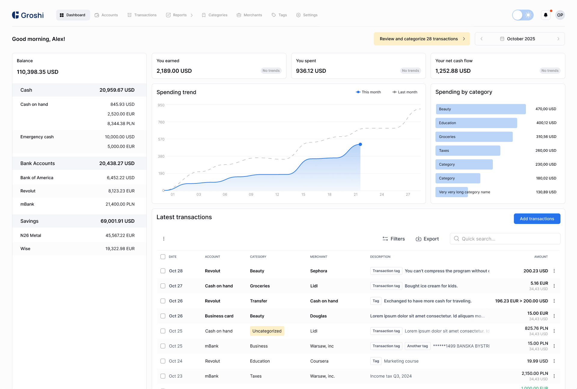 Join thousands of users across the globe who simplify their multi-currency expense tracking and budgeting with Groshi.